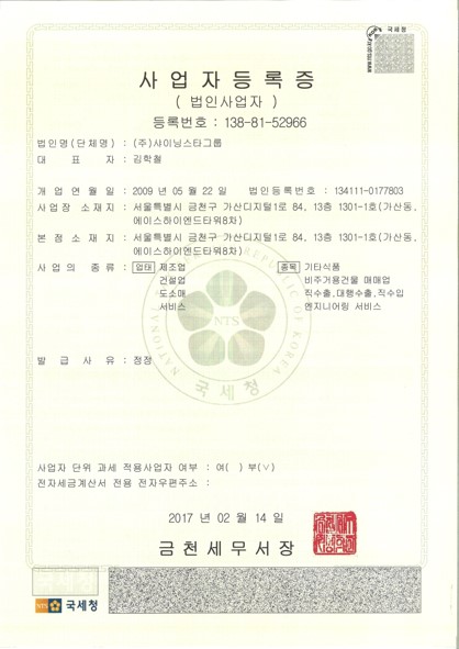 Address : 1301, Acehighend Tower 8-cha, 84, Gasan digital 1-ro, Geumcheon-gu, Seoul , Korea.